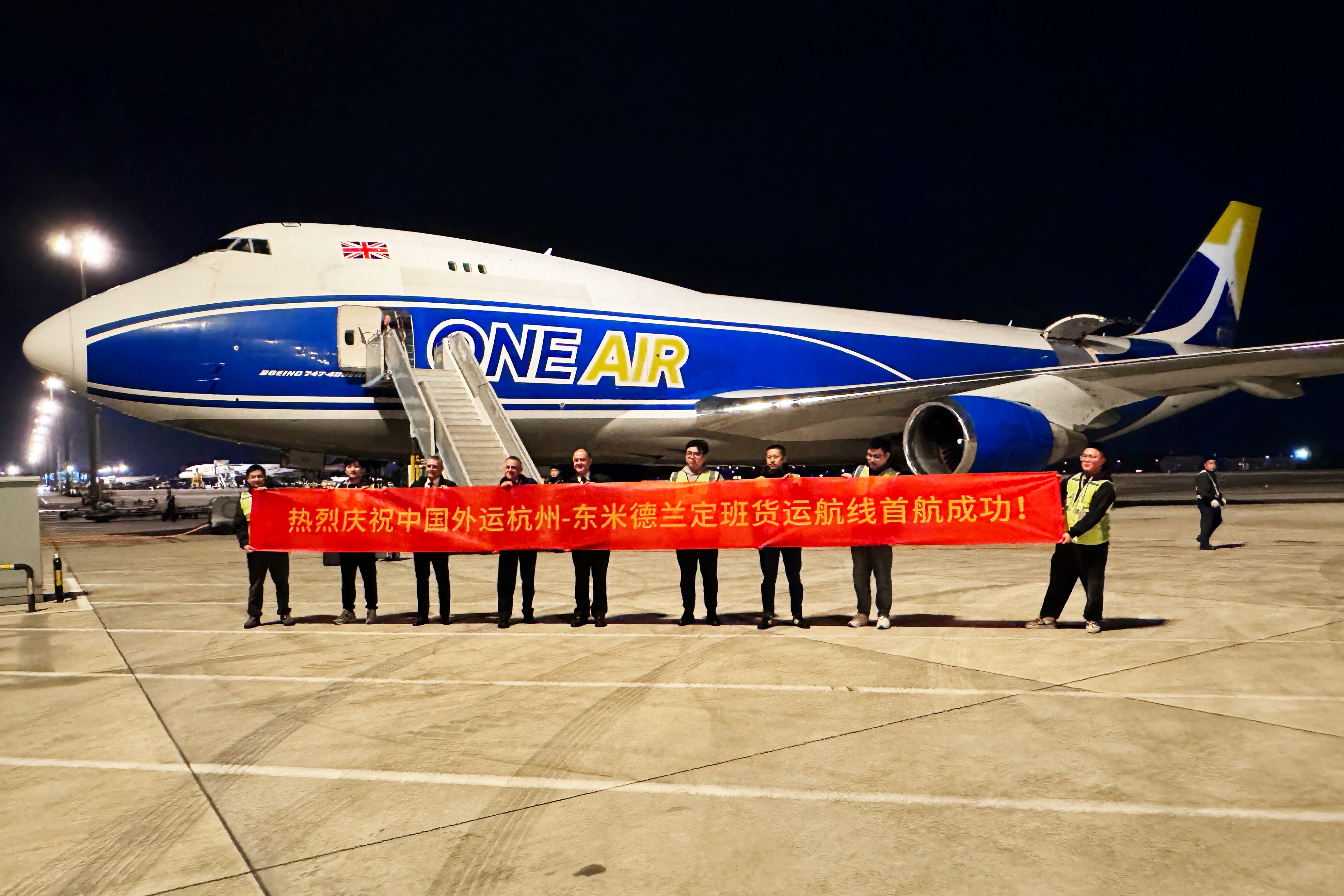 In recent years, the trade relations between China and the UK are continuously strengthening. Previously, the transit cargo flights from China to the UK were time-consuming with high cost,while the direct cargo flight capacity around Yangtze River Delta region did not match the customer's need on cargo volume. Therefore, the demand for direct cargo flight from Hangzhou to the UK has been constantly increasing. In order to meet customer needs and actively expand capacity resources, Sinotrans collaborated with the British all cargo airline company ONE AIR to jointly design the direct all cargo flight route from Hangzhou to East Midlands.