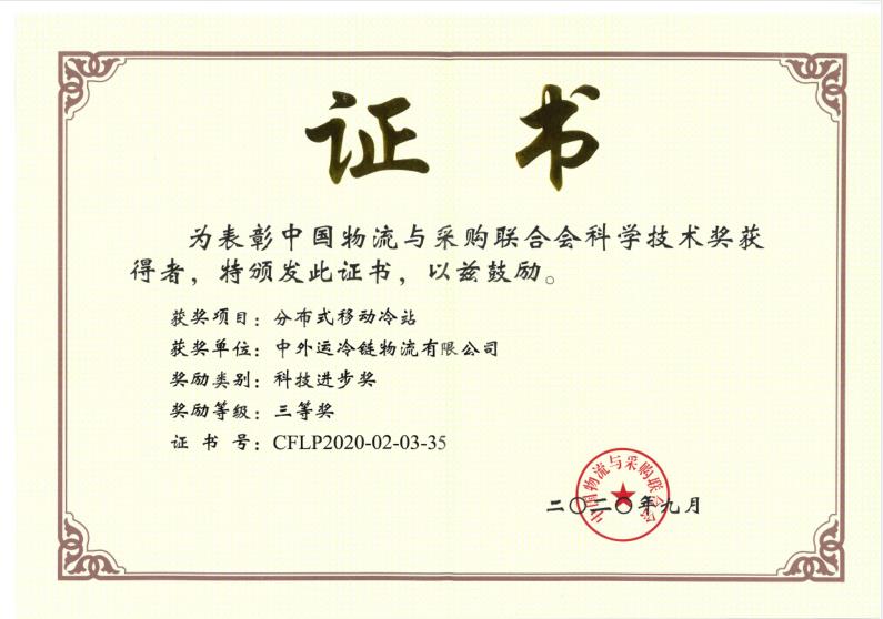 中国外运智能化运输管理平台荣获“2022年度中国物流与采购联合会科学技术奖”中的科技进步奖三等奖