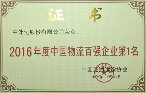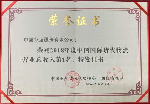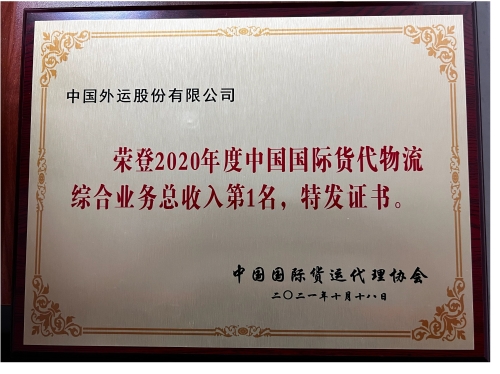 荣登2020年度中国国际贷代物流综合业务总收入第1名